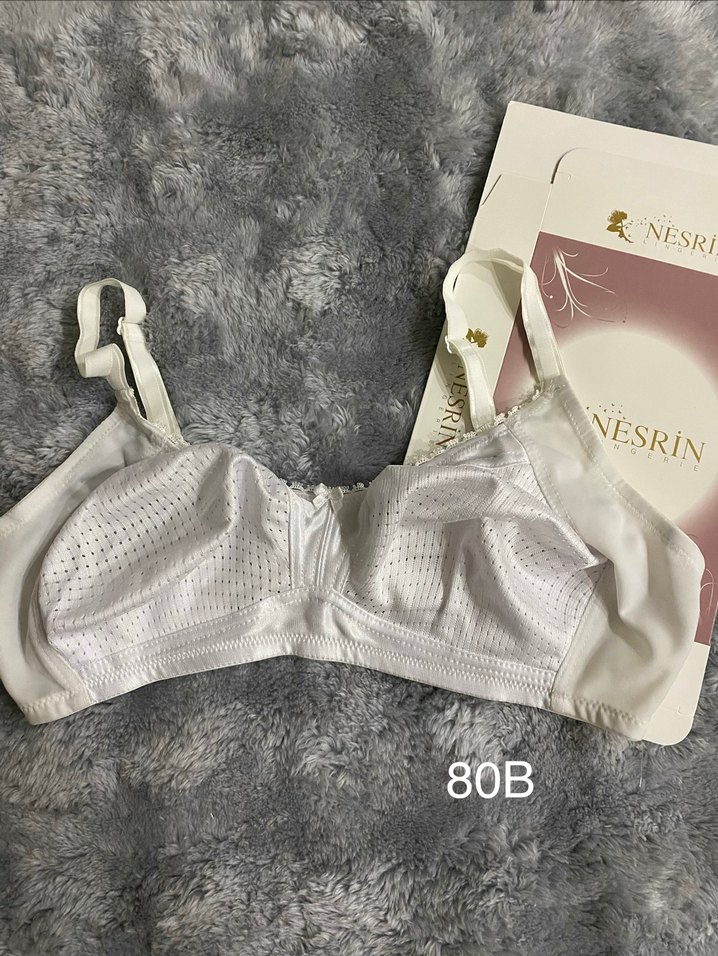 Nesrim markasının parlak beyaz 80B beden, modern klasik tarzda kısa uzunlukta mini sütyeni. Düz ve ayarlanabilir askılıdır. ✨