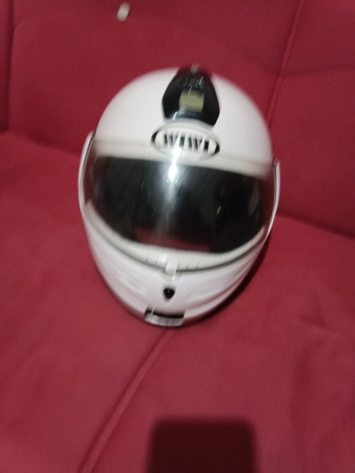 Minimalist tasarımlı parlak beyaz seramik motosiklet kaskı, şeffaf vizörlü. Rock punk havasına uyumlu. ️