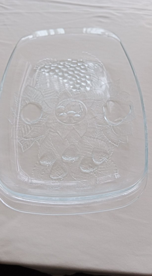 Parlak beyaz camdan yapılmış, üzerinde hafif kabartmalı tasarım bulunan, servis için uygun bir tabak. ️