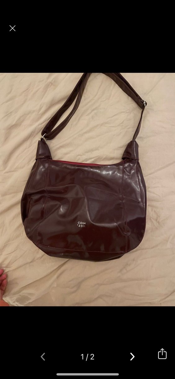 Parlak Bordo deri kadın çantası, fermuarlı ve desensiz tasarımıyla şık ve gotik tarz için uygundur. Hiç kullanılmadı