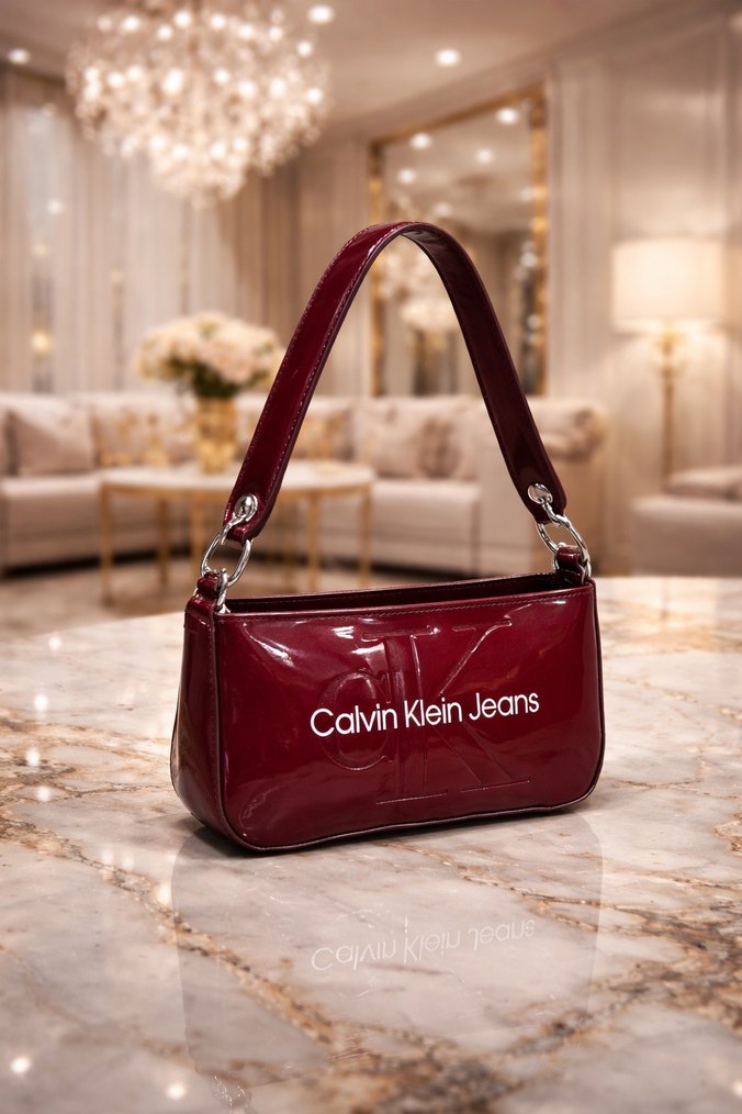 Parlak bordo Deri Calvin Klein Kadın Çanta