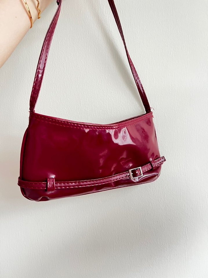 Parlak bordo deri kadın çanta, tokalı detayıyla sokak modasına uygun ve günlük kullanıma ideal. Cesur Paris tarzı şıklık katıyor.