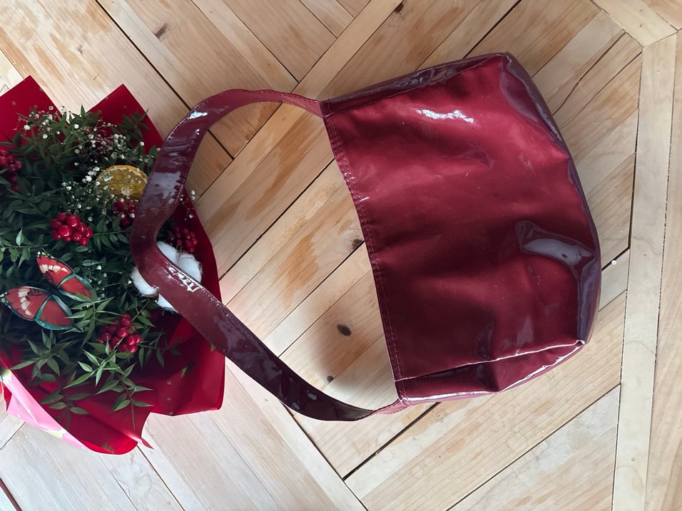 Parlak bordo deri kadın çantası, günlük kullanım için uygun ve Paris tarzını yansıtan bir tasarıma sahip. Çit Çit yerinde çıkıntı vardır sorunlu görünüyor ama kullanıma engel değil