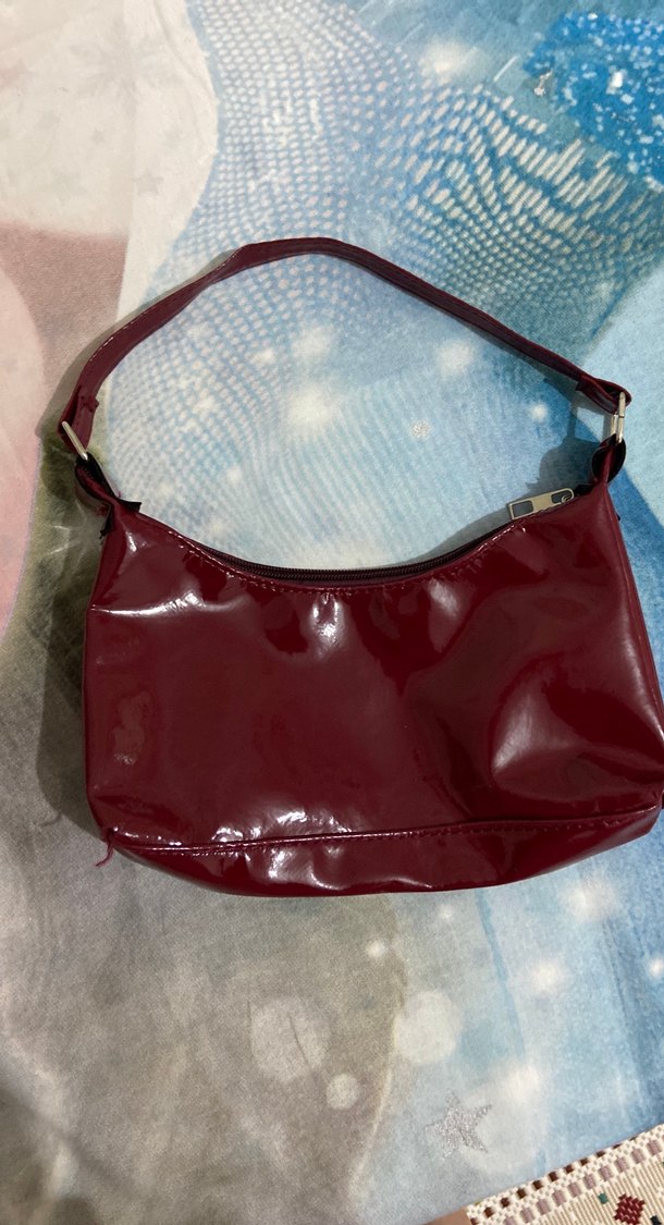 Parlak bordo deri kadın omuz çantası, tokalı askısı ve desensiz tasarımıyla günlük kullanıma uygundur. Paris sokak modasına uygun şık ve rahat bir görünüme sahiptir.