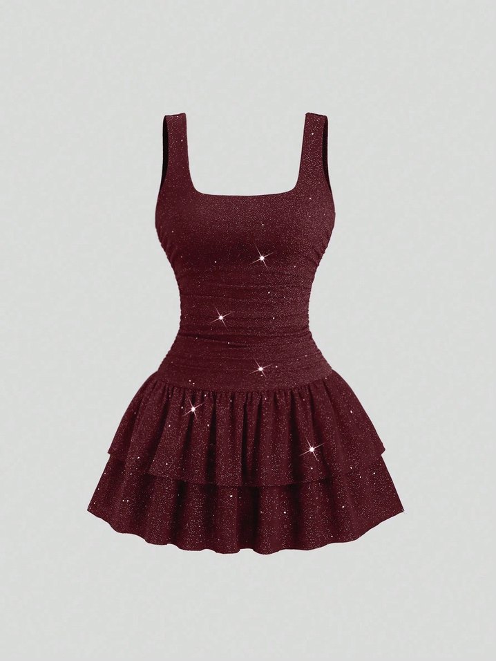 Parlak bordo renkli, simli sentetik kumaştan, kare yakalı ve kolsuz, beli oturan kadın elbisesi. Romantik akşamlar için cesur ve göz alıcı bir seçim. ✨istek üzerine 2-3 haftada geliyor