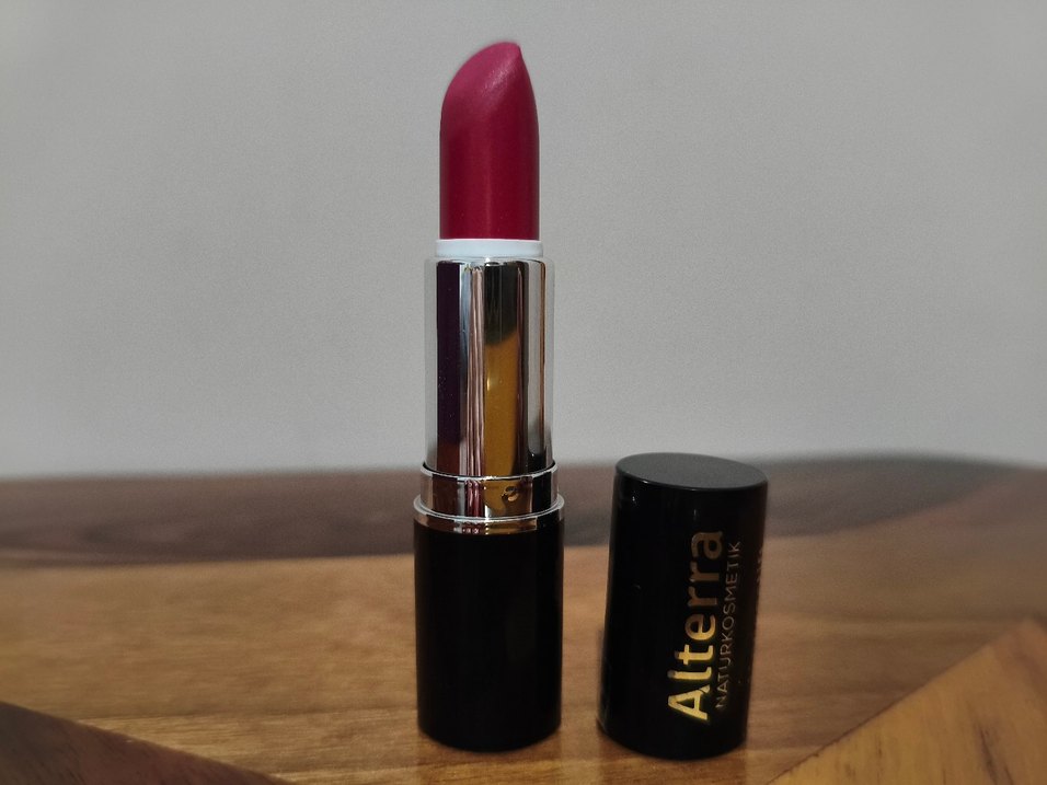 Alterra markalı parlak bordo renkte ruj. Siyah ve gümüş renkli şık ambalajda, dudaklara canlı renk ve parlaklık katar.
