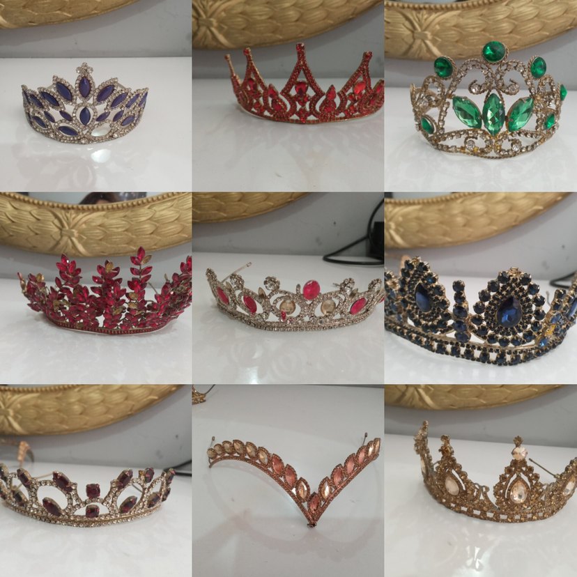 Parlak Cam Taşlı Çok Renkli Gelin Tacı