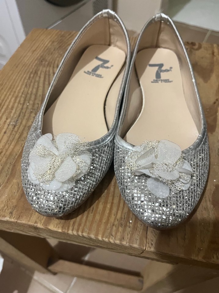 , parlak yüzeyli ve çiçekli süslemeli kız babeti, modern klasik tarzda yapılmıştır.
