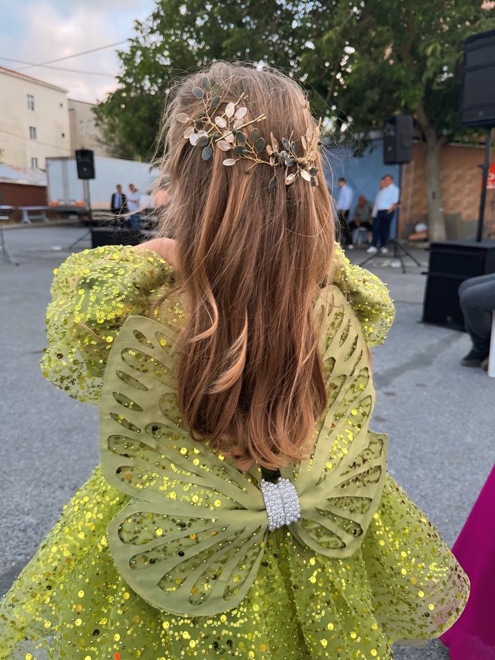 4.5 yaşındaki 1.15 cm boy 18 kilo kızıma özel diktirdik sadece 2/3 saat teyzesinin nişanında giydi muhafaza edecek yerim olmadığı ve büyüyeceği için satıyorum. Saç aksesuarı da var fakat biz teyzesiyle aynı saç aksesuarı yaptırmıştık o sebeple kullanmadık. Kendi saç tokasını da göndereceğim. alıcısına hayırlı olsun iade kabul edilmemektedir.