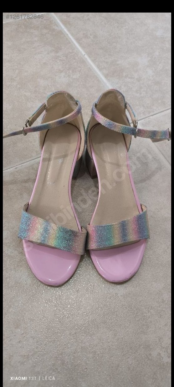 Parlak Çok Renkli Blok Topuklu Kadın Sandalet