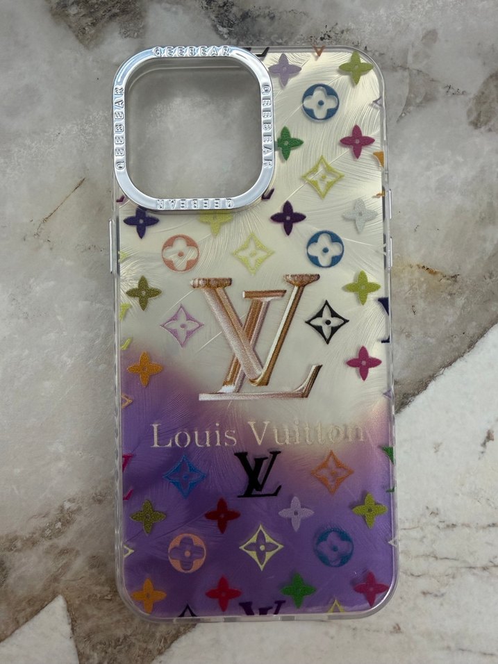 Parlak yüzeye sahip çok renkli bohem desenli telefon kılıfı, Louis Vuitton logosu içerir. Canlı ve hafif renklerle şık görünüm sunar. İphone 14 Pro Max ( İkili fiyatıdır )