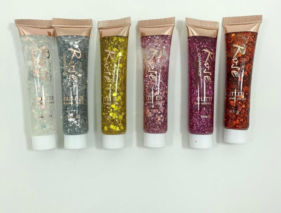 Parlak simlerle çok renkli glitter parlatıcısı tüpleri. yüze ışıltı ve parlaklık katıyor. ✨
