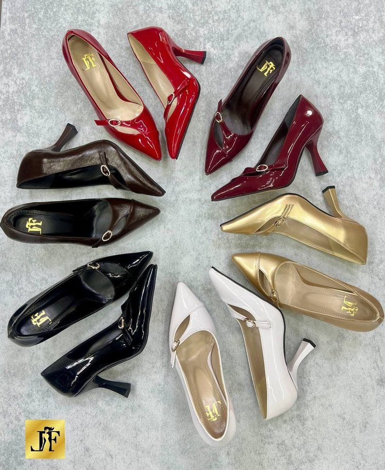 Kadın stiletto topuklu ayakkabılar, parlak çok renkli ve desenli tasarıma sahiptir. Modern klasik stil ve ofis kullanımı için uygundur. Malzeme kauçuktur.