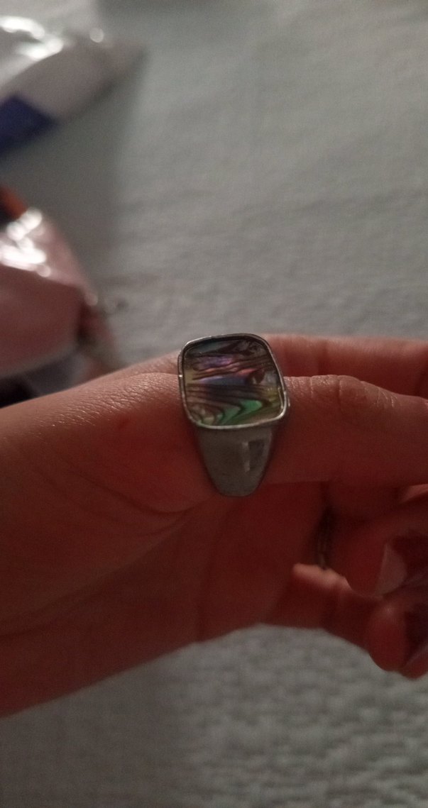 Parlak çok renkli tie-dye desenli vintage tarzda yüzük, romantik akşamlar için uygundur. Bohem ve retro havası yansıtır.