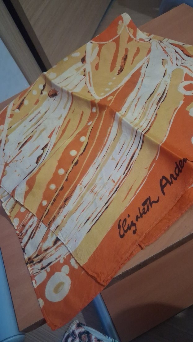 Kadınlar için parlak bej ve turuncu tonlarında, drape tarzda bohem vintage desenli fular.ölçüleri 67× 67 cm dir. yurt dışından almıştım.