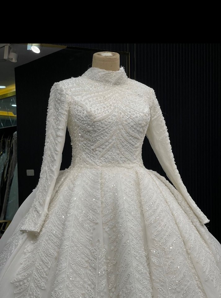Parlak beyaz renkte, yüksek yakalı ve uzun kollu gelinlik. Modern klasik tarzda, prenses kesim bir kez düğünde giyildi Nisanur gelinlikten almıştım pazarlık payı vardır 60 kg kadar olur