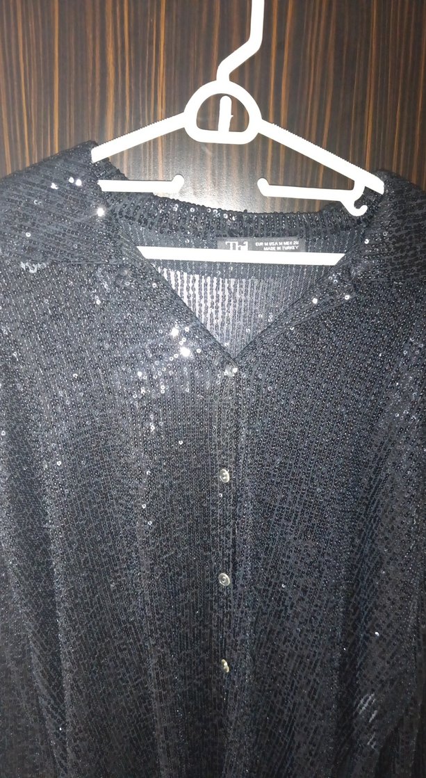 Parlak Düğmeli V Yaka Siyah Kadın Bluz