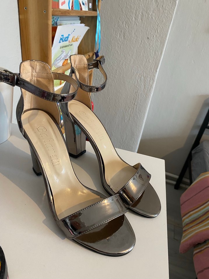Parlak gri 9cm kalın topluklu kadın ayakkabı. Bir kez giyildi.
