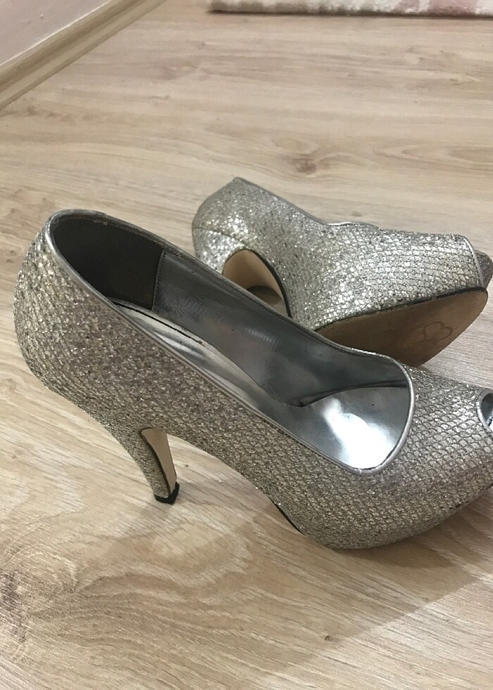 Gümüş gri abiye ayakkabı , fotoğraflarda göründüğü gibidir