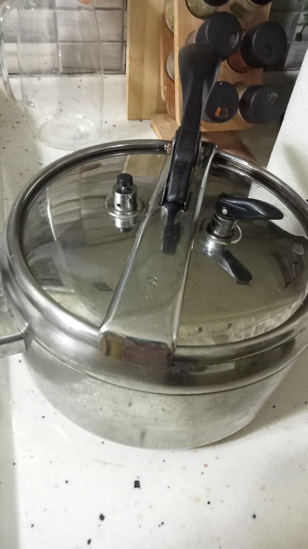 Parlak gri renkte, bu düdüklü tencere güvenli kilit mekanizması, buhar çıkış vanaları ve sağlam tutma sapına sahiptir. hava kaçırıyor lastik takılması gerek