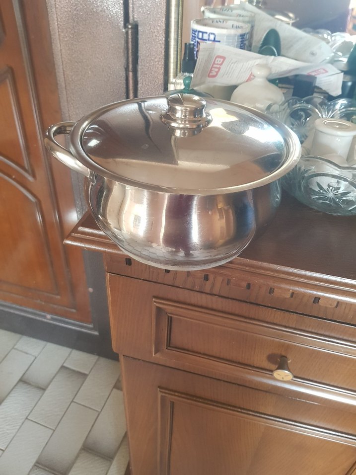Parlak Gri Kapaklı Çelik Tencere
