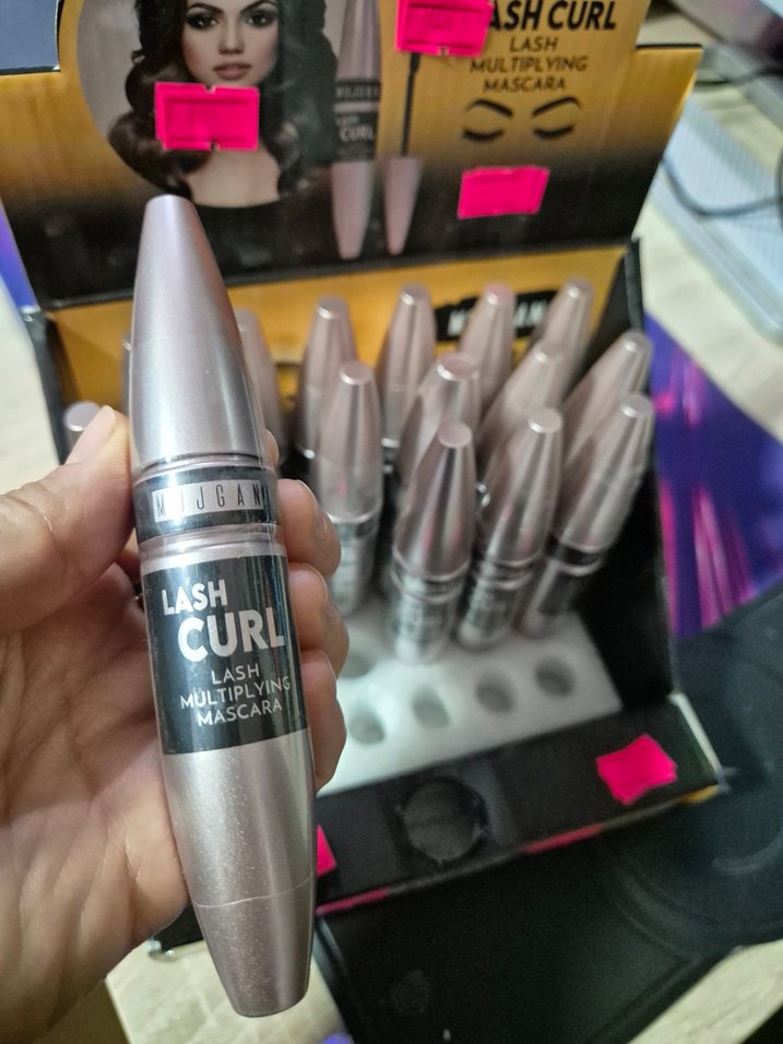 Parlak gri Lash Curl maskara, kirpikleri çok katmanlı olarak kıvırır ve hacim kazandırır.