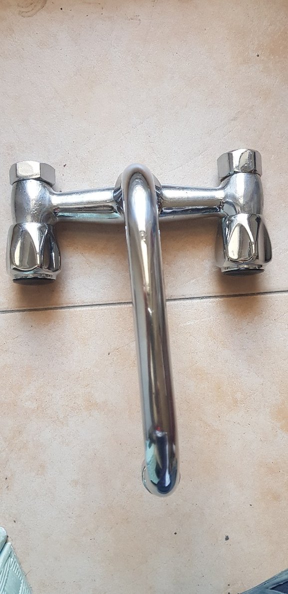 Parlak gri renkte, sıcak ve soğuk su için çift kontrollü mutfak musluğu. Şık tasarımı farklı lavabolara uyum sağlar.