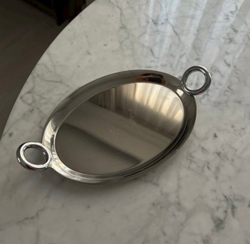 Parlak gri oval tepsi, iki yuvarlak kulplu. Arow marka birkaç kez kullanıldı görselde gördğünüz gibidir ağır çelik bir tepsi ona göre satın alabilirsiniz