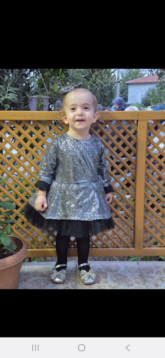 Gri renkli, uzun kollu ve pul payetlerle süslenmiş bu dar kesim elbise, çocuklar için şık ve modaya uygun bir tercihtir. ✨etek uçlarını içe katladım ve yapıştırdım daha güzel oldu arkasında fiyonk mevcut.