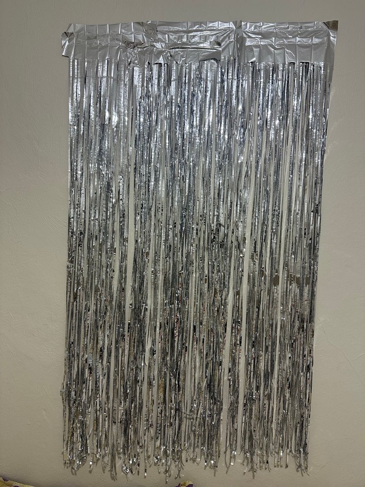 Parlak gri renkte, uzun ince saçaklardan oluşan bu perde, mekana özgün bir karşı kültür tarzı katıyor.