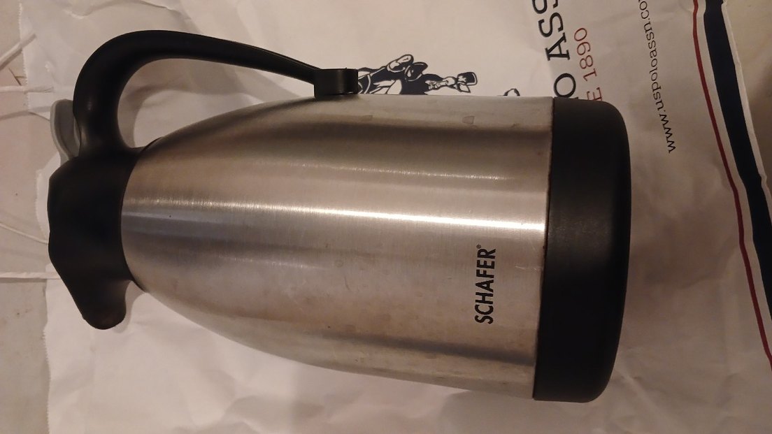 Parlak gri renkte Schafer marka termos, sağlam tutma sapına sahiptir. ☕sağlamdır iade kabul edilmeyecek