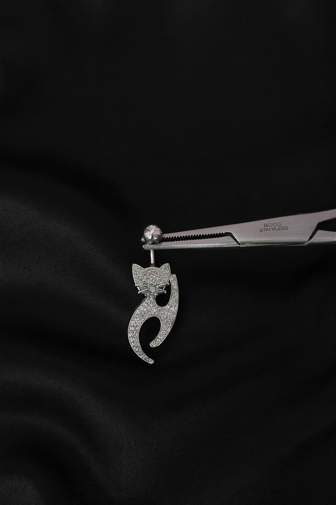 Parlak Gri Sequinsli Kedili Göbek Piercingi