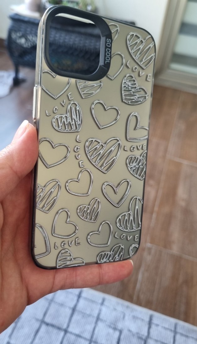 Parlak gri siyah telefon kılıfı, street wear tarzında kalp ve love desenleriyle. Koyu tonlar canlı görünüm sağlar. ❤️