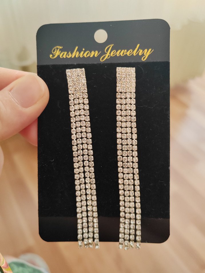 Parlak desenli, gümüş renkli midi uzunlukta sırt düşen küpeler. Trendy gündelik sokak stili için uygun. ✨