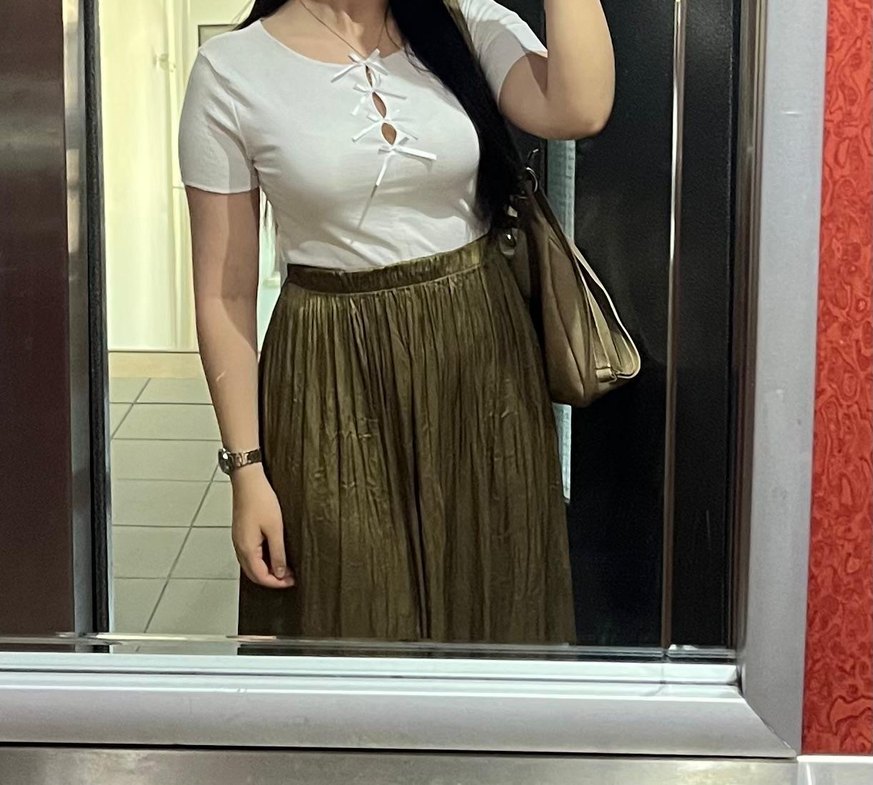Parlak haki renkte, üretilmiş, pilili ve bol kesim midi etek. Günlük kullanıma uygundur ve trend sokak stili için idealdir. Sadece bikez bayramda giydim 1000₺ ye aldım