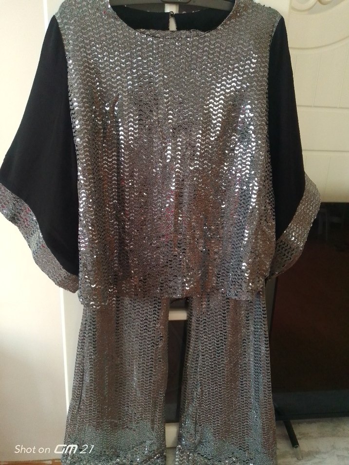 Marka temsilidir ❗ gri parlak kumaştan, salaş kesim ve drapeli ikili takım, yuvarlak yakalı, avant-garde parti tarzına uygun 40beden 42beden 44beden uyumludur ölçü bilgisi isteyene bilgisi verilir iadesi yoktur fiyatı sondur.