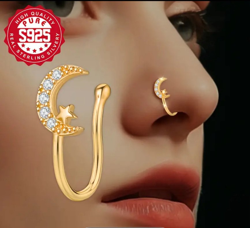 Altın renkli, parlak işlemeli ay ve yıldız figürlü midi hızma. Cesur ve bohem tarz için uygun, romantik akşamlar için ideal.