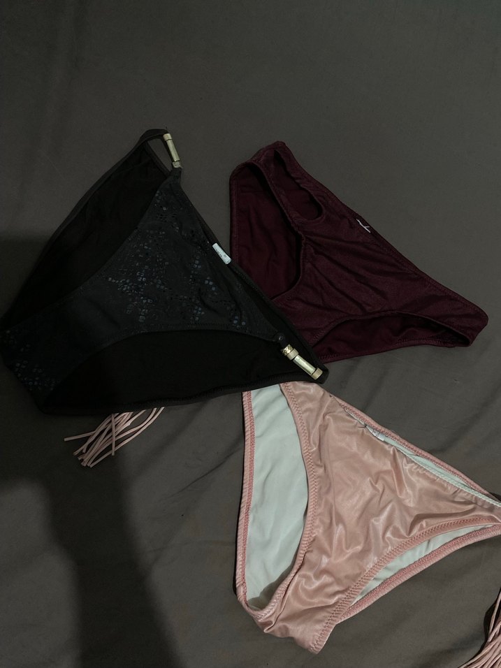 Bordo , kahverengi , pudra renkli ve strappy detaylı, fitted kesim kadın bikini altıdır. Günlük kullanıma uygun, desen içermeyen modeldir.