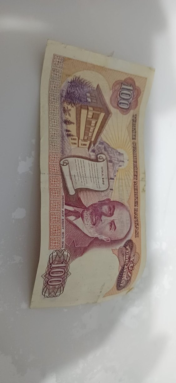Parlak kahverengi 100 lira eski banknot, tarihi figür ve geleneksel tasarım içerir. Koleksiyonluk hediye ürünü.