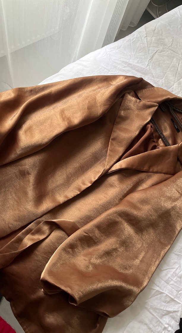 Parlak kahverengi, bol kesim ve uzun boylu kadın elbisesi, askılı kollarıyla bohem ve Paris tarzını yansıtıyor. ✨