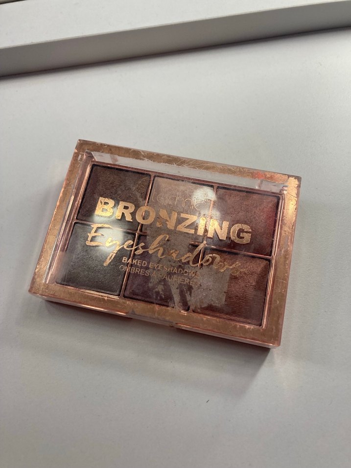 Bronzing far paleti, parlak kahverengi tonlarda altı renk içerir ve sıcak, ışıltılı göz makyajı için uygundur. ✨