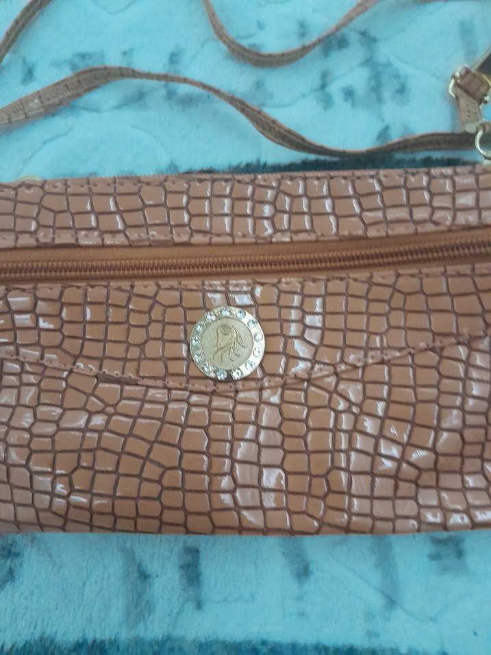 Parlak kahverengi desenli ve 3 fermuarlı, günlük kullanım içindir