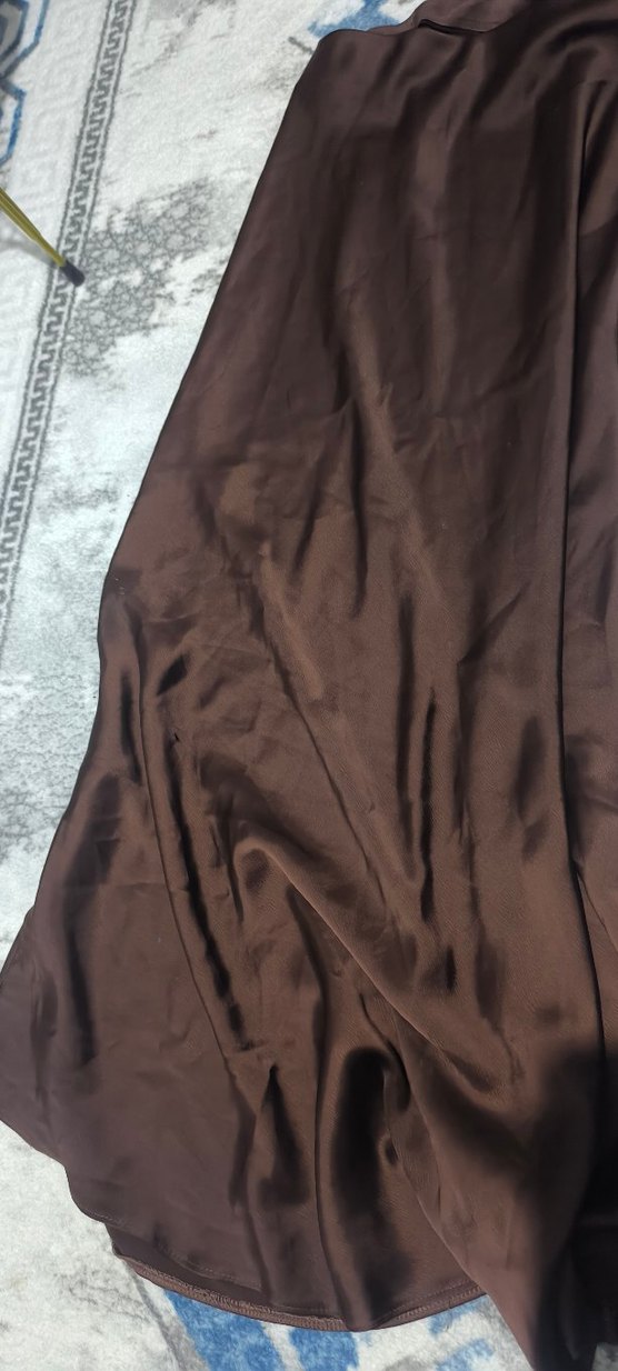 Parlak kahverengi, düz desensiz ve çağdaş tarzda fon perde. Pürüzsüz, yansıtıcı yüzeyiyle modern bir görünüm sunar.