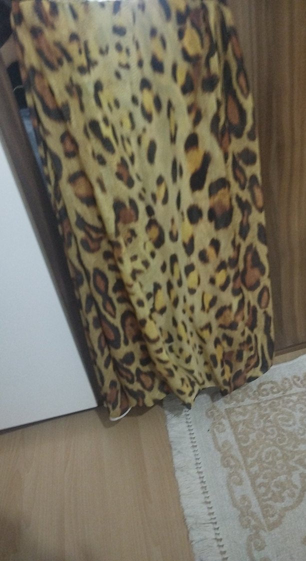 Parlak kahverengi leopar desenli, bohem tarzda canlı ve dikkat çekici oareo