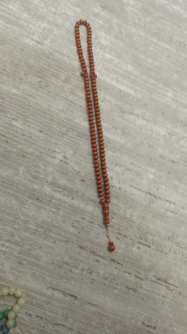 Parlak kahverengi renkte, minimalist tarzda ve geleneksel yuvarlak boncuklardan oluşan erkek tesbihi.