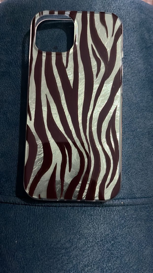 Parlak kahverengi zebra desenli telefon kılıfı, çağdaş bir tasarıma sahip ve pürüzsüz bir yüzey sunar.