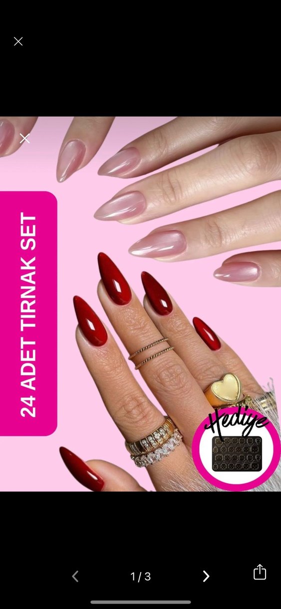24 adet parlak kırmızı takma tırnak seti, dikkat çekici bir görünüm sağlar.