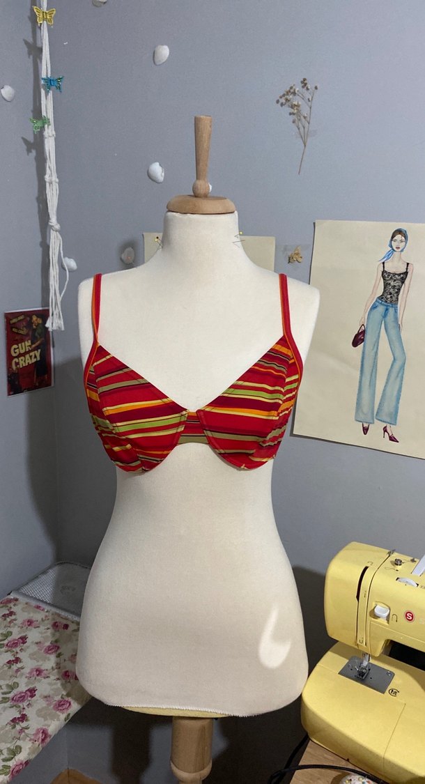 Parlak Kırmızı Askılı Bikini Üstü vintage Adidas