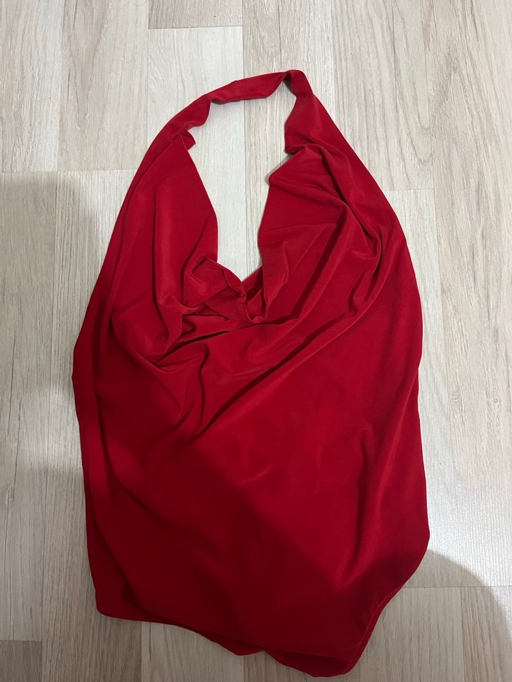 Parlak kırmızı drape detaylı sırt dekolteli bluz bir kere bile giymedim alıp