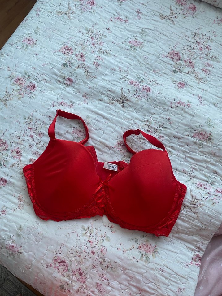 Parlak kırmızı renkte, desensiz, bohem tarzda ve normal uzunlukta rahat bir kadın sütyeni. ❤️